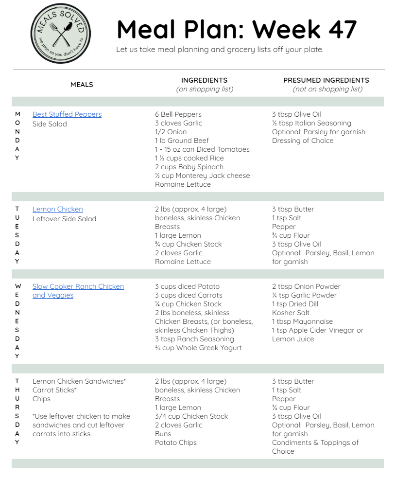 Link to Meal Plan, Week of January 15, 2023